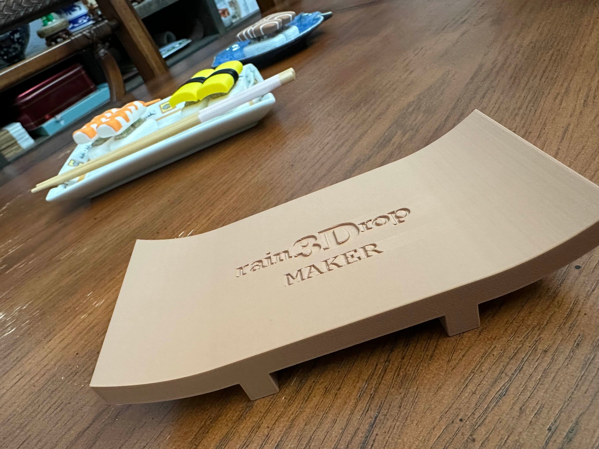 Includes 1 3d printed sushi plate with rain3Drop maker logo